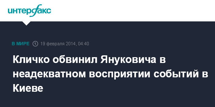 Москва. 19 февраля. INTERFAX.RU - Лидер партии УДАР Виталий Кличко считает, что президент Украины Виктор Янукович ошибается в оценках ситуации, сложившейся в Киеве.