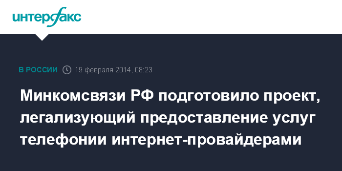 Минкомсвязи РФ подготовило проект, легализующий предоставление услуг телефонии интернет-провайдерами