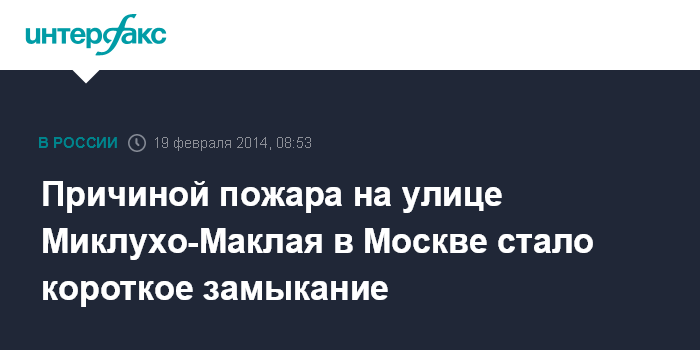 Москва. 19 февраля. INTERFAX.RU - Причиной крупного пожара на юго-западе столицы, произошедшего накануне на улице Миклухо-Маклая, скорее всего, стало короткое замыкание, сообщил в среду "Интерфаксу" источник в правоохранительных органах.