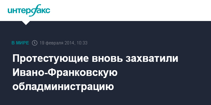 Киев. 19 февраля. INTERFAX.RU - Участники массовых беспорядков во вторник вновь заняли здание Ивано-Франковской облгосадминистрации, сообщает "Галицкий Корреспондент".