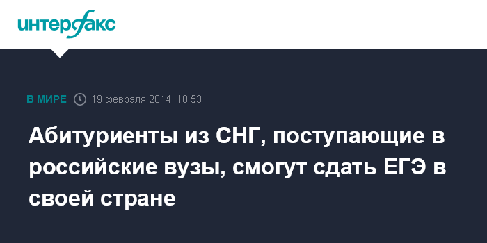 Ранее замминистра образования и науки РФ Вениамин Каганов сообщал, что выпускники школ в государствах Содружества смогут сдать Единый государственный экзамен по русскому языку в специальных центрах на родине.