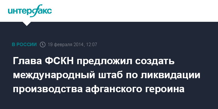 Москва. 19 февраля. INTERFAX.RU - Глава Федеральной службы РФ по наркоконтролю Виктор Иванов предложил создать международный штаб по борьбе с производством героина на территории Афганистана.
