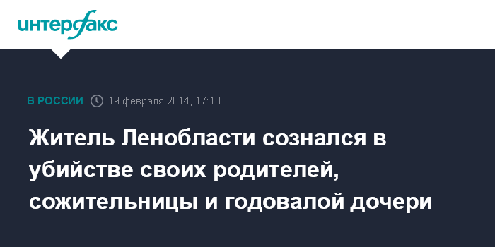 Житель Ленобласти сознался в убийстве своих родителей, сожительницы и годовалой дочери