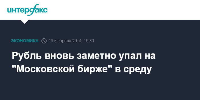 Москва. 19 февраля. INTERFAX.RU - Рубль вновь заметно упал к доллару, евро и бивалютной корзине на "Московской бирже" в среду, обновляя многолетние и исторические минимумы на фоне усиления спекулятивного давления на российскую валюту после публикации планов Минфина РФ по приобретению валюты.