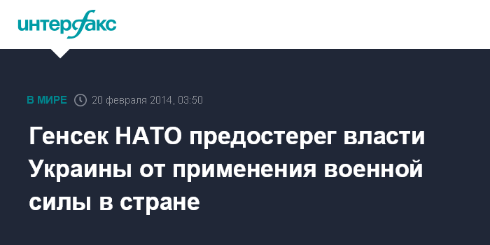 Брюссель. 20 февраля. INTERFAX.RU - Генеральный секретарь НАТО Андерс Фог Расмуссен призвал украинские власти "воздержаться от дальнейшего насилия".