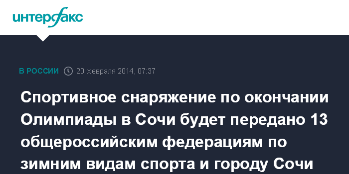 Спортивное снаряжение по окончании Олимпиады в Сочи будет передано 13 общероссийским федерациям по зимним видам спорта и городу Сочи