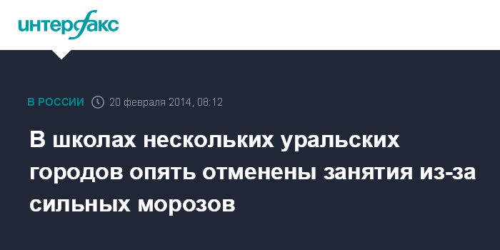 Москва. 20 февраля. INTERFAX.RU - В четырех города Уральского федерального округа в четверг школьники вновь не пойдут на уроки из-за сильных морозов.