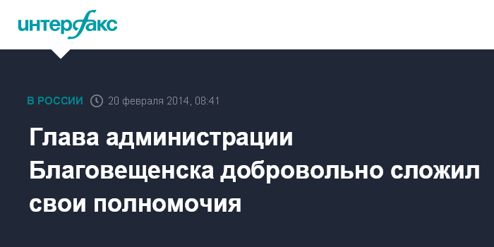 Благовещенск. 20 февраля. INTERFAX.RU - Глава администрации Благовещенска (Амурская область) Павел Березовский подал заявление главе города о добровольном сложении с себя полномочий, сообщает администрация города в четверг.