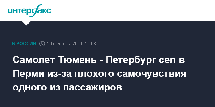 Самолет Тюмень - Петербург сел в Перми из-за плохого самочувствия одного из пассажиров