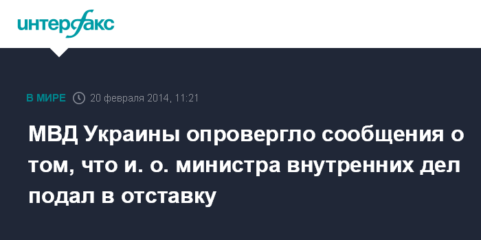 Киев. 20 февраля. INTERFAX.RU - В МВД заявляют, что и. о. министра внутренних дел Украины Виталий Захарченко находится на своем рабочем месте, а сообщения о том, что он якобы написал заявление об отставке, не соответствует действительности.