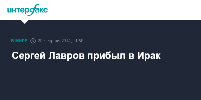 Багдад. 20 февраля. INTERFAX.RU - Глава МИД РФ Сергей Лавров прибыл в Ирак с рабочим визитом, в рамках которого проведет переговоры с премьер-министром этой страны Нури аль-Малики и главой МИД Ирака Хошияром Зибари.