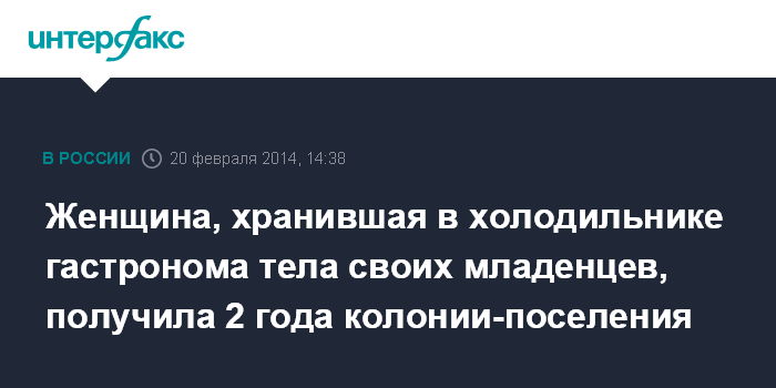 Женщина, хранившая в холодильнике гастронома тела своих младенцев, получила 2 года колонии-поселения