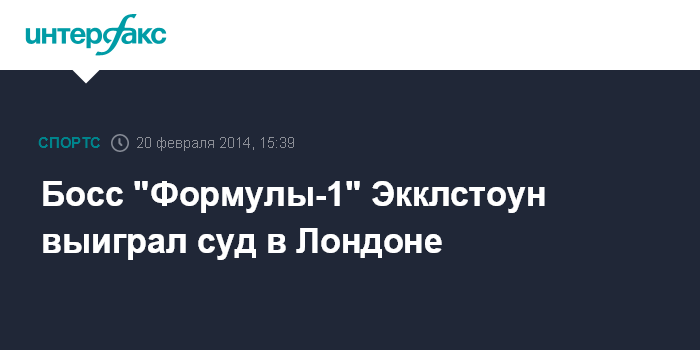Москва. 20 февраля. INTERFAX.RU - Высокий суд Лондона в четверг огласил вердикт по делу Берни Экклстоуна, с которого были сняты все обвинения, выдвинутые против него немецкой компанией Constantin Medien, сообщает F1News.