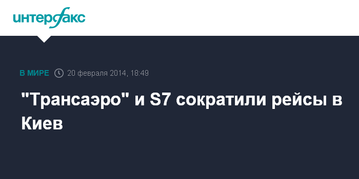 Москва. 20 февраля. INTERFAX.RU - ОАО "Трансаэро" и группа S7 сократили перелеты в Киев, сообщили "Интерфаксу" в авиакомпаниях.