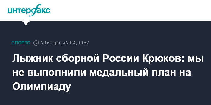 Москва. 20 февраля. INTERFAX.RU - Олимпийский чемпион Ванкувера, серебряный призер Игр в Сочи, российский лыжник Никита Крюков констатировал, что лыжная сборная России не выполнила медальный план на ОИ-2014.