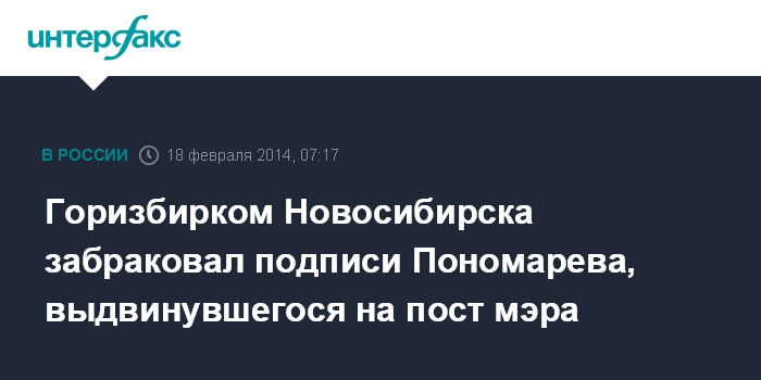 Горизбирком Новосибирска забраковал подписи Пономарева, выдвинувшегося на пост мэра