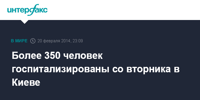 Москва. 20 февраля. INTERFAX.RU - Около 600 человек обратились к врачам "скорой помощи" в Киеве с утра вторника до 18:00 четверга, сообщает пресс-служба Киевской городской администрации.
