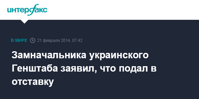 Москва. 21 февраля. INTERFAX.RU - Заместитель начальника Генерального штаба Вооруженных сил Украины генерал-лейтенант Юрий Думанский написал рапорт об отставке.