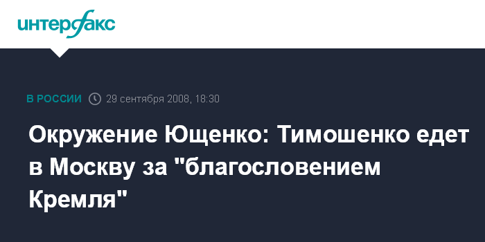 Окружение Ющенко: Тимошенко едет в Москву за "благословением Кремля"