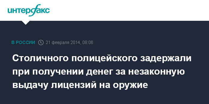Москва. 21 февраля. INTERFAX.RU - Старший инспектор по направлению лицензионно-разрешительной работы УВД Юго-Западного округа Москвы задержан в столице по подозрению в незаконной выдаче лицензий на оружие.