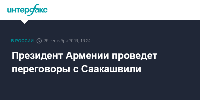 Москва. 29 сентября. INTERFAX.RU - Президент Армении Серж Саргсян 30 сентября с официальным визитом отправится в Грузию. Как сообщили "Интерфаксу" в пресс-службе президента Армении, в Тбилиси Саргсян проведет переговоры с президентом Грузии Михаилом Саакашвили, а также встретится с председателем парламента и министром иностранных дел Грузии.