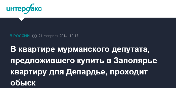 В квартире мурманского депутата, предложившего купить в Заполярье квартиру для Депардье, проходит обыск