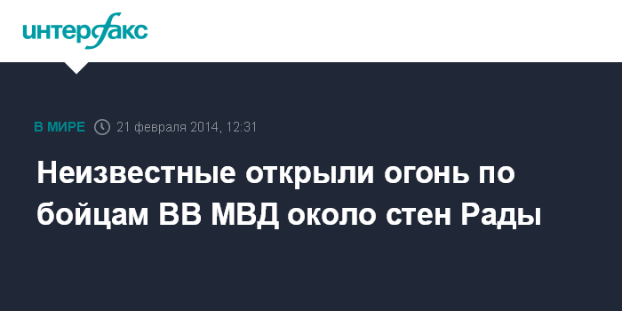 Киев. 21 февраля. INTERFAX.RU - В МВД заявляют, что на ул.Институтской в центре Киева в направлении военнослужащих внутренних войск МВД Украины неизвестные открыли стрельбу, есть попытки прорваться Верховной Раде.