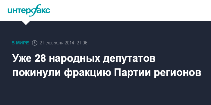 Москва. 21 февраля. INTERFAX.RU - Вице-спикер парламента Руслан Кошулинский объявил о выходе из фракции Партии регионов еще четырех народных депутатов.