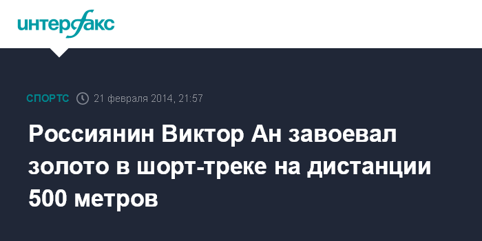 Москва. 21 февраля. INTERFAX.RU - Виктор Ан, выступающий за сборную России по шорт-треку, завоевал "золото" зимней Олимпиады в Сочи в забеге на 500 м.