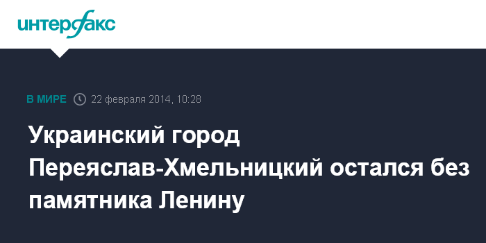 Москва. 22 февраля. INTERFAX.RU - В районном центре Переяслав-Хмельницкого в Киевской области Украины неизвестные сбросили с постамента памятник Ленину, сообщает интернет-издание Gazeta.ua.