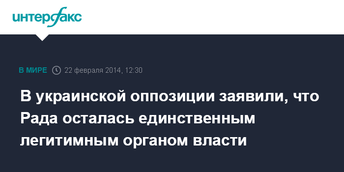Москва. 22 февраля. INTERFAX.RU - Представитель фракции "Батькивщина" в Верховной Раде Александр Турчинов заявил, что на сегодняшний день единственным легитимным органом власти на Украине остался парламент. "Сегодня в Украине единственным легитимным органом власти является Верховная Рада Украины", - сказал А.Турчинов, выступая в субботу в парламенте.