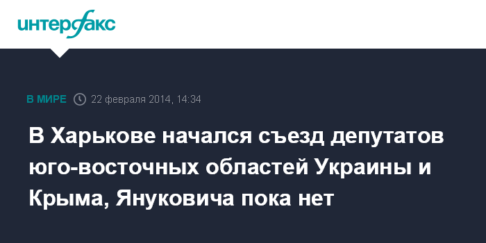 Москва. 22 февраля. INTERFAX.RU - В Харькове начался съезд депутатов всех уровней юго-восточных областей Украины и Крыма.