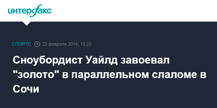 Москва. 22 февраля. INTERFAX.RU - Россиянин Вик Уайлд победил словенца Жана Кошира в финале соревнований сноубордистов в параллельном слаломе на Олимпийских играх-2014 в Сочи. Бронзовая медаль досталась австрийцу Бенджамину Карлу.