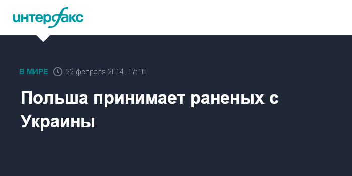 Москва. 22 февраля. INTERFAX.RU - Девять человек, получивших ранения в ходе беспорядков на Украине, доставлены в субботу для лечения в госпитале министерства внутренних дел Польши, сообщает в польское телевидение.