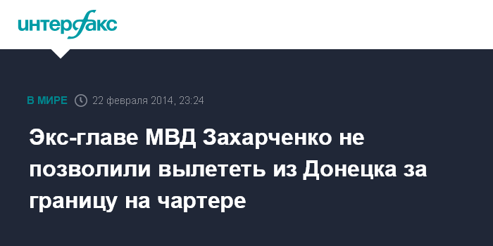 Москва. 22 февраля. INTERFAX.RU - Экс-министр внутренних дел Виталий Захарченко в субботу пытался покинуть территорию Украины, однако пограничники не выпустили его из страны.