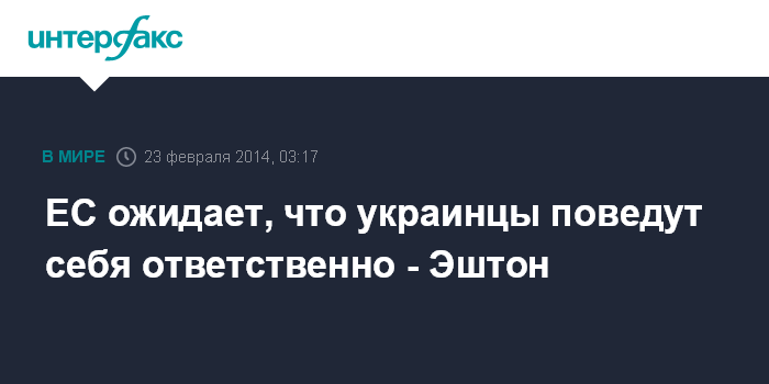 Брюссель. 23 февраля. INTERFAX.RU - Верховный представитель ЕС по иностранным делам Кэтрин Эштон призвала все стороны украинского конфликта продолжать участие в конструктивном диалоге, чтобы "выполнить законные демократические устремления украинского народа".