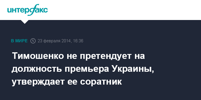 Тимошенко не претендует на должность премьера Украины, утверждает ее соратник