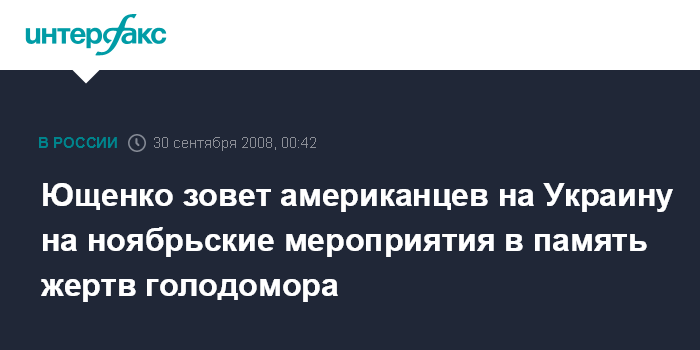 Ющенко зовет американцев на Украину на ноябрьские мероприятия в память жертв голодомора