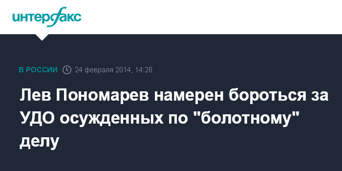Москва. 24 февраля. INTERFAX.RU - Лидер движения "За права человека" Лев Пономарев подверг критике решение Замоскворецкого суда, который в понедельник приговорил к срокам - от условного наказания до четырех лет лишения свободы восемь фигурантов "болотного дела".