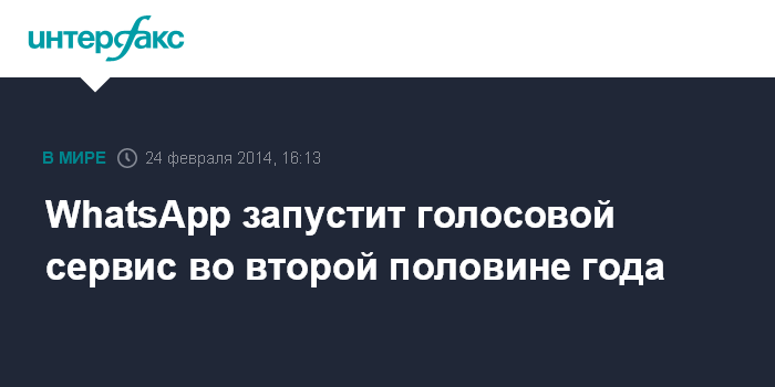 Москва. 24 февраля. INTERFAX.RU - Мобильный мессенджер WhatsApp, о приобретении которого за рекордные $19 млрд на прошлой неделе объявил Facebook, намерен во второй половине 2014 года запустить голосовой сервис, заявил совладелец и гендиректор компании Ян Кум на Мобильном конгрессе в Барселоне.