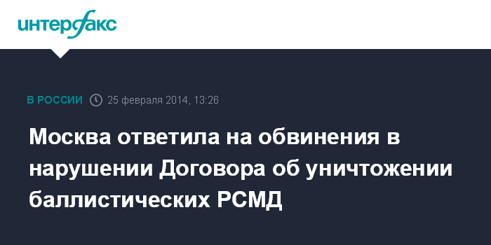 Москва ответила на обвинения в нарушении Договора об уничтожении баллистических РСМД