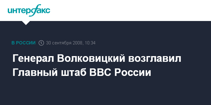Москва. 30 сентября. INTERFAX.RU - Начальником Главного штаба - первым заместителем главкома ВВС России назначен генерал-лейтенант Вадим Волковицкий.