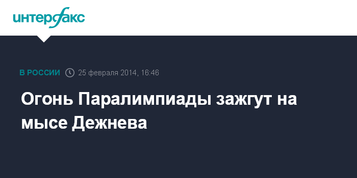 Москва. 25 февраля. INTERFAX.RU - Эстафета Паралимпийского огня "Сочи - 2014" стартует в среду в 5:30 по местному времени на мысе Дежнева (Чукотка) - в самой восточной точке России.