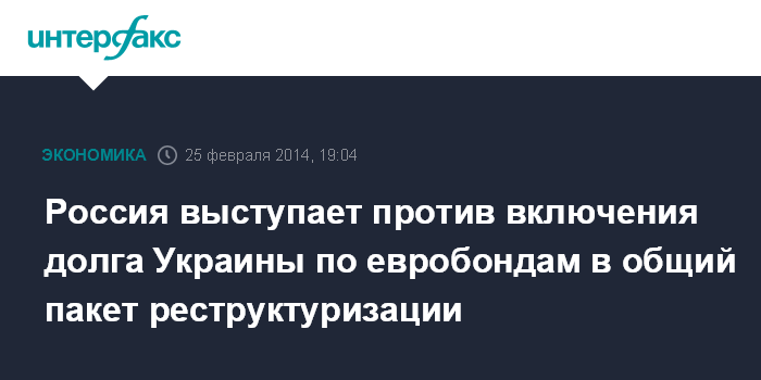 Россия выступает против включения долга Украины по евробондам в общий пакет реструктуризации