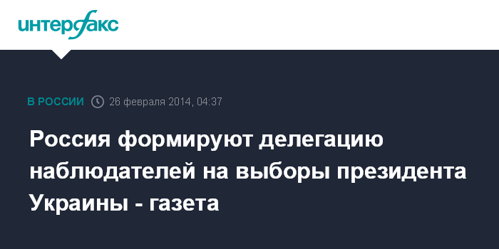 Россия формируют делегацию наблюдателей на выборы президента Украины - газета