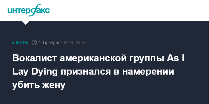 Москва. 26 февраля. INTERFAX.RU - Основатель и вокалист американской метал-группы As I Lay Dying Тим Ламбезис признался в намерении убить свою бывшую жену, сообщают американские СМИ.