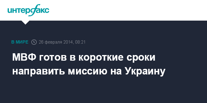 Москва. 26 февраля. INTERFAX.RU - Международный валютный фонд (МВФ) направит техническую миссию на Украину, как только Киев обратится к этой международной организации за финансовой помощью, сообщила директор-распорядитель Международного валютного фонда Кристин Лагард, передает агентство Bloomberg.