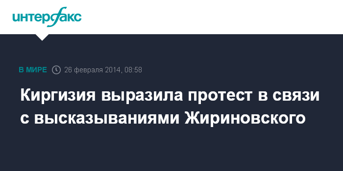 Призыв лидера ЛДПР на митинге 23 февраля, "о присоединении центральноазиатских государств, в том числе и Киргизии, к Российской Федерации, а также упоминание трагических событий 1916 года в Киргизии с явной фальсификацией исторических фактов вызывают, по меньшей мере, глубокое недоумение и не соответствуют духу стратегического партнерства между Киргизией и Россией".
