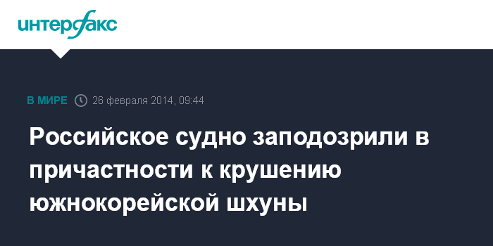 Российское судно заподозрили в причастности к крушению южнокорейской шхуны