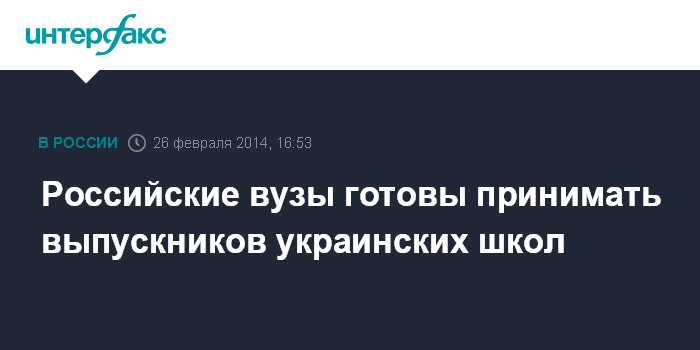 Москва. 26 февраля. INTERFAX.RU - Глава Минобрнауки Дмитрий Ливанов заявляет, что в России готовы видеть выпускников украинских школ в российских вузах.